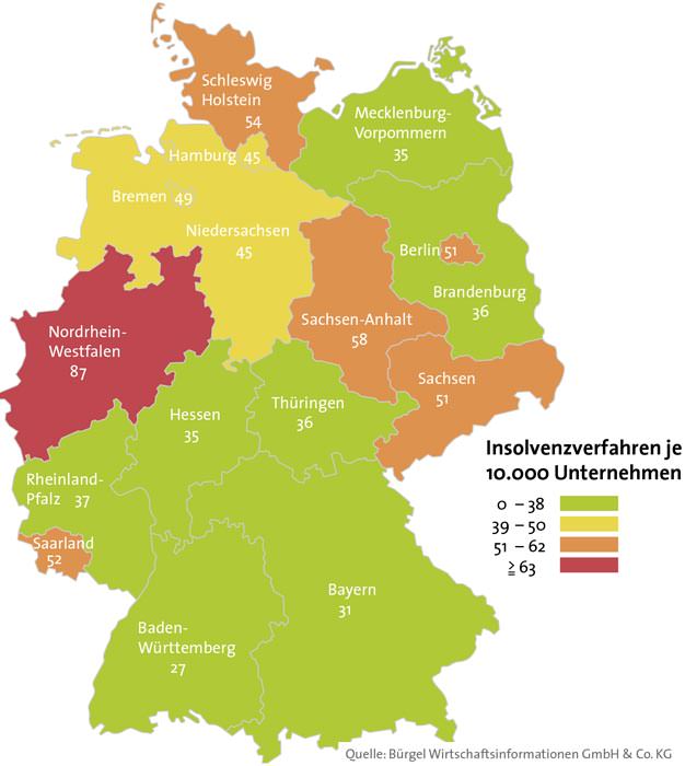 Bauletter, BAULINKS.de-Meldungen, vom 17.9.2012Firmeninsolvenzen sinken um 1,4 Prozent: Neugründungen, Gewerbe und Einzelunternehmen am stärksten betroffenIm ersten Halbjahr 2012 hat sich die europäische Schuldenkrise offenbar nicht auf die Zahl der Firmeninsolvenzen in Deutschland ausgewirkt. In diesem Zeitraum meldeten in Deutschland 15.082 Unternehmen Insolvenz an - 1,4 Prozent weniger als im Vergleichszeitraum 2011. Indes rechnet die Hamburger Wirtschaftsauskunftei Bürgel in ihrer aktuellen Studie "Firmeninsolvenzen 1. Halbjahr 2012" für die zweite Jahreshälfte mit einer Trendumkehr: "Die hiesige Wirtschaft schwächt sich aktuell ab, was in eine steigende Zahl an Firmeninsolvenzen münden wird. Ein Indikator ist vor allem die abnehmende Bonität deutscher Unternehmen", kommentiert Bürgel-Geschäftsführer Dr. Norbert Sellin. Für das Gesamtjahr 2012 geht Bürgel momentan von bis zu 31.000 Firmeninsolvenzen aus. Besonders prekär sei die Lage von Jungunternehmen. Bei den bis zu zwei Jahre alten Firmen (Anteil an Insolvenzstatistik: 26,5 Prozent) steigen die Fallzahlen im ersten Halbjahr 2012 um 1,6 Prozent auf 3.993 Pleiten gegenüber der Referenzjahreshälfte 2011. Bei Unternehmen, die bereits drei bis vier Jahre am Markt sind (Anteil an Insolvenzstatistik: 12,3 Prozent), fällt der Anstieg um 0,5 Prozent geringer aus. Nordrhein-Westfalen ist im absoluten und relativen Ländervergleich (5.697 Firmenpleiten absolut bzw. 87 Fälle je 10.000 Unternehmen) am stärksten von Unternehmenspleiten betroffen. Weit über dem Bundesdurchschnitt von 47 Fällen je 10.000 Firmen rangieren vor allem auch Sachsen-Anhalt (58 je 10.000 Firmen) und Schleswig-Holstein (54). Am wenigsten Firmeninsolvenzen gab es in Baden-Württemberg mit 27 Pleiten je 10.000 Unternehmen, gefolgt von Bayern (31), Hessen und Mecklenburg-Vorpommern (je 35). 42 Prozent aller Firmenpleiten im ersten Halbjahr gehen auf das Konto von Gewerbetreibenden und Einzelunternehmen. 38,6 Prozent der Firmenpleiten betreffen die GmbHs. Mit großem Abstand auf dem dritten Platz folgt die Rechtsform der Unternehmergesellschaft (haftungsbeschränkt) mit einem Anteil von 5,3 Prozent. Allerdings steigen die Fallzahlen bei dieser Rechtsform um 75 Prozent massiv an. Die wichtigsten Ursachen für Unternehmensinsolvenzen sind erstens das Ausbleiben neuer oder die Stornierung oder die Verschiebung bereits erteilter Aufträge. Zweitens sorgen Dominoeffekte dafür, dass zahlungsunfähige Firmen weitere Unternehmen mit in die Pleite reißen. Drittens erhöhen oft innerbetriebliche Fehler, etwa im Management, sowie fehlendes Eigenkapital das Insolvenzrisiko - eine Ursache dafür, dass vor allem Jungunternehmen in die Zahlungsunfähigkeit geraten. ... Vielleicht können wir gleich im ersten Beitrag etwas dazu beitragen: